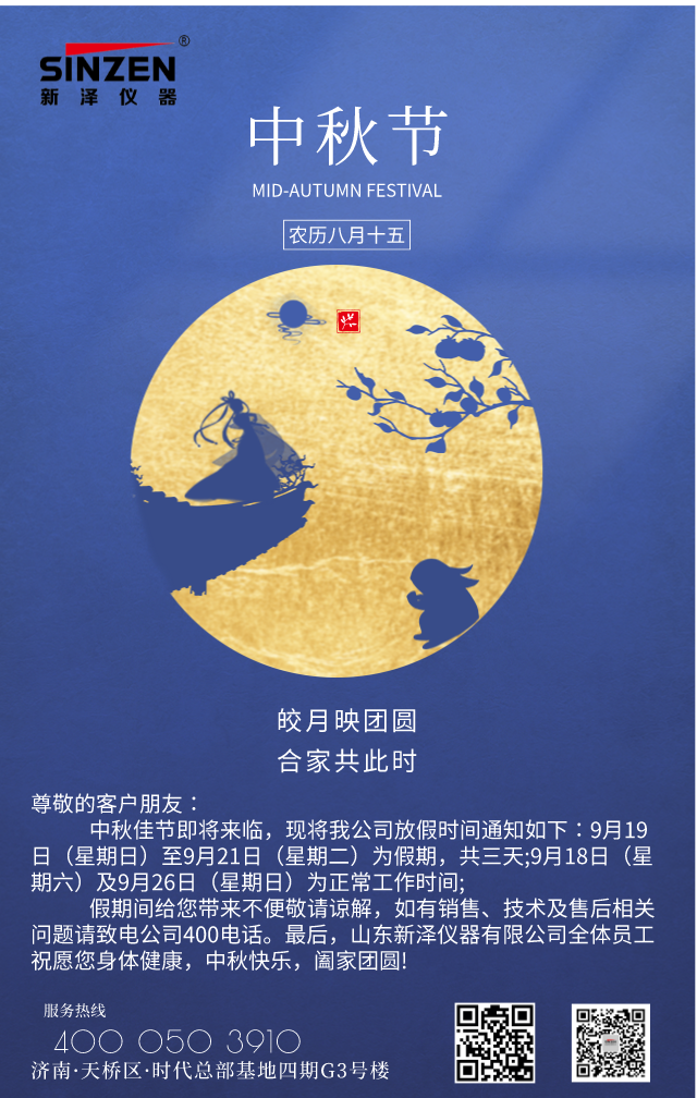 中秋是慶團圓的傳統佳節,是歡慶豐收的日子,更是闔家團聚、把酒邀月的喜慶之時。時值中秋佳節來臨,山東新澤感謝每一位新老客戶的信任與厚愛,感謝每一位同仁的奉獻與支持,在此向您致以最真摯的感謝和最誠摯的祝福!恭祝大家:中秋快樂,身體健康,闔家歡樂,幸福美滿!