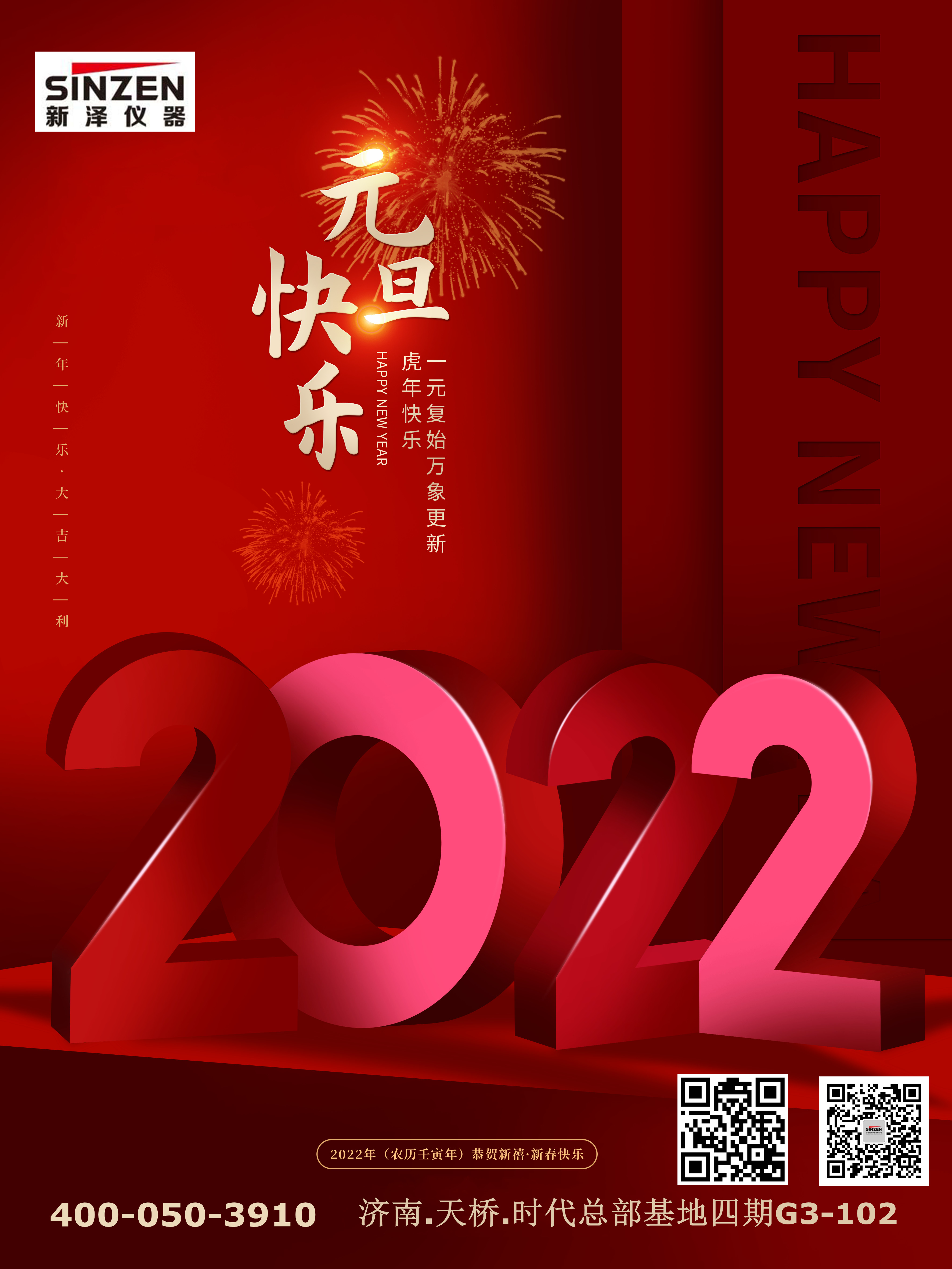 盛世迎春山河秀,神州煥彩萬物新。正值辭舊迎新的美好時刻,山東新澤儀器有限公司向一直關(guān)心支持公司發(fā)展的各級領(lǐng)導(dǎo)和各界人士,向辛勤奮戰(zhàn)在工作一線的成員們,致以最衷心的新年問候和美好祝福!