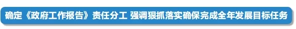 會議將《政府工作報告》提出的重點任務逐項分解,明確責任單位和時限,要求國務院各部門以對人民高度負責的精神,不折不扣抓好落實,奮力完成全年經(jīng)濟社會發(fā)展主要目標任務。