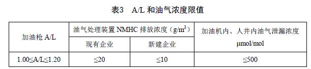 5.3 A/L和油氣濃度應執(zhí)行表3規(guī)定的限值。