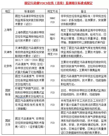 1)上海:《上海市固定污染源非甲烷總烴在線監(jiān)測(cè)系統(tǒng)安裝及聯(lián)網(wǎng)技術(shù)要求(試行)》、《上海市固定污染源非甲烷總烴在線監(jiān)測(cè)系統(tǒng)驗(yàn)收及運(yùn)行技術(shù)要求(試行)》;