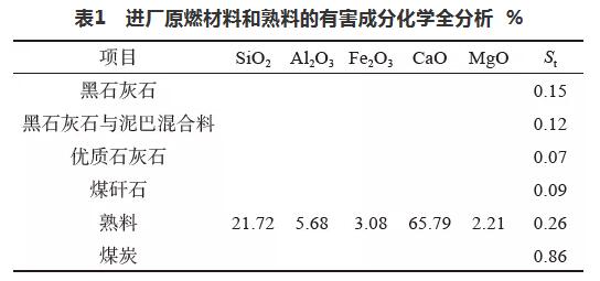 1)對進廠原燃材料和熟料的有害成分進行化學全分析,見表1。