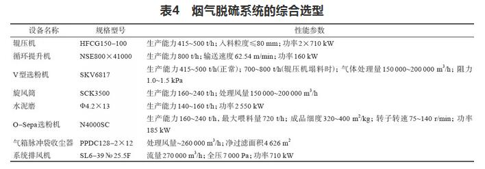 煙氣脫硫系統(tǒng)的綜合選型見表4。
