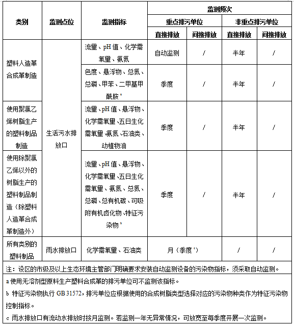 橡膠和塑料制品工業排污單位均須在廢水總排放口設置監測點位,生活污水單獨直接排入環境水體的須在生活污水排放口設置監測點位,重點排污單位須在雨水排放口設置監測點位。