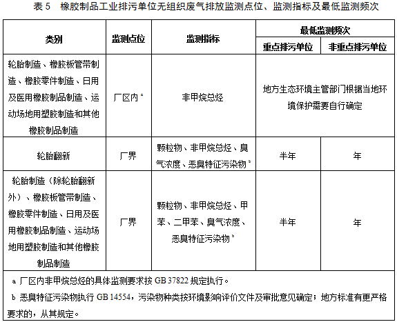 5.1.2 橡膠制品工業排污單位監測指標及監測頻次