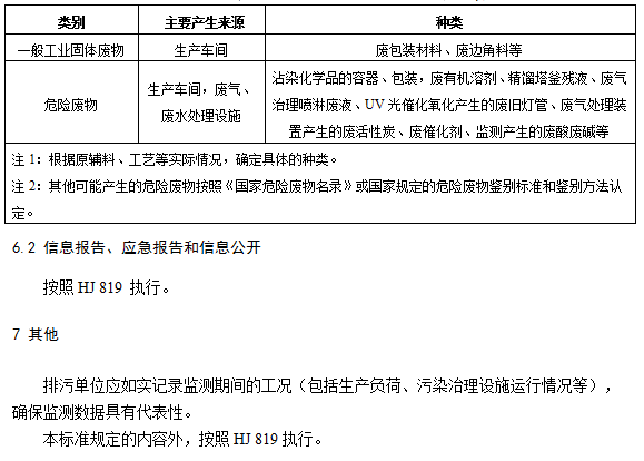 5.5.1 除表1~表6中的監測指標外,5.5.1.1和5.5.1.2中的污染物指標也應納入監測指標范圍,并參照表1~表6和HJ 819確定監測頻次。
