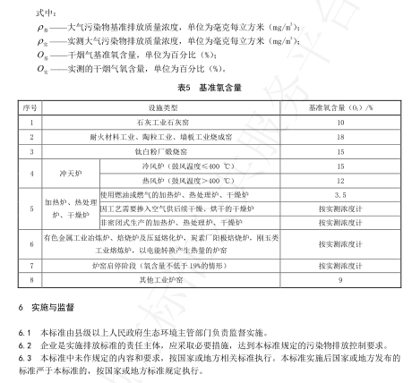 基準氧含量(O2):耐火材料工業燒成窯:18/%;剛玉類工業熔煉爐、以電能轉換產生熱量的各類爐窯:按實測濃度計;爐窯啟停階段(氧含量不低于19%的情形):按實測濃度計等。
