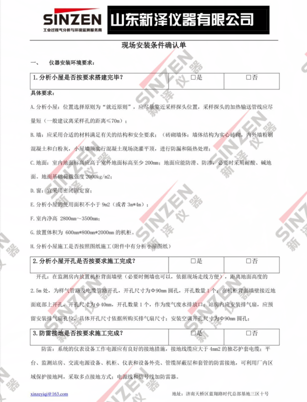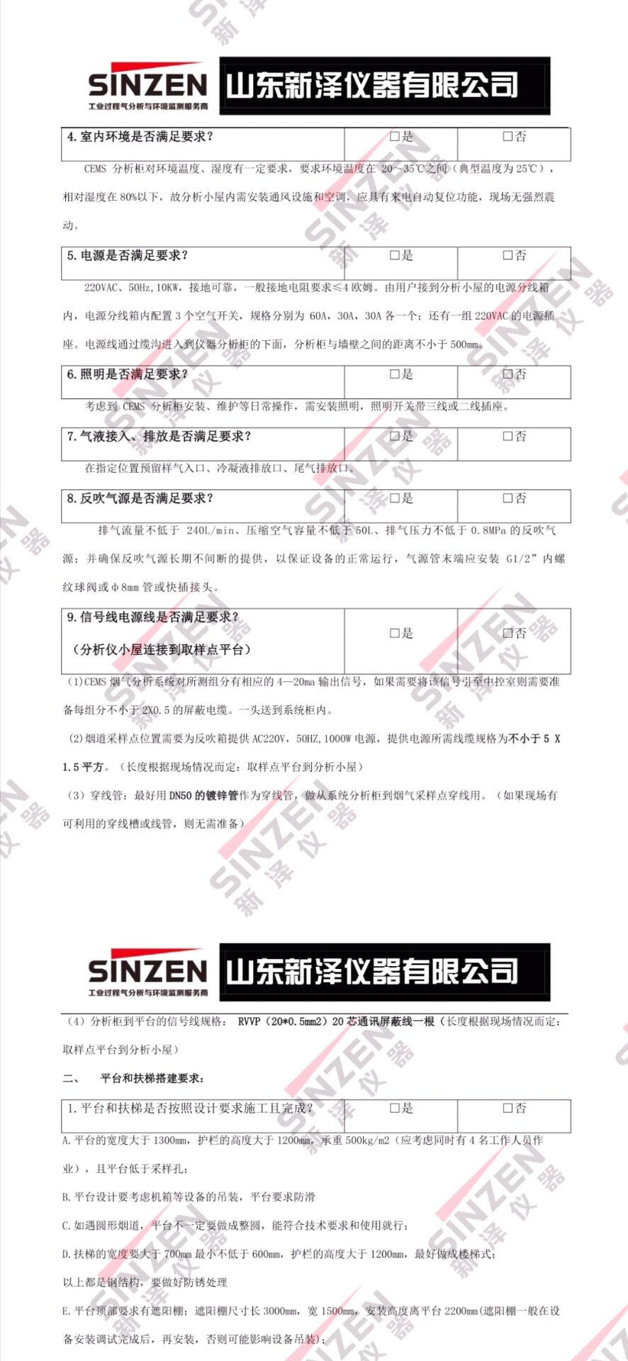 尊敬的客戶您好,首先非常感謝您選購我們山東新澤儀器有限公司生產的煙氣在線監(jiān)測系統(tǒng),山東新澤是一家專注煙氣在線監(jiān)測系統(tǒng)生產的品牌企業(yè),為了您訂購的設備能夠及時盡快的安裝投入運行,貴公司需要注意以下事項和準備事宜: