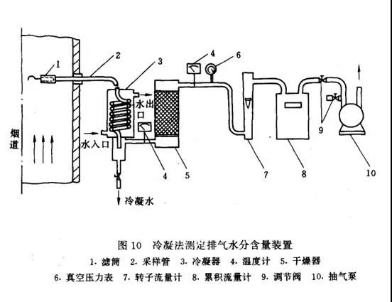 方法原理:由煙道中抽取一定體積的排氣,使之通過冷凝器,根據冷凝出來的水量,加上從冷凝器排出的飽和氣體含有的水蒸汽量,計算排氣中的含濕量。