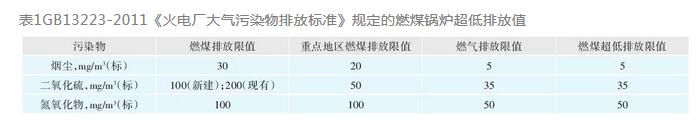 GB13223-2011《火電廠大氣污染物排放標(biāo)準(zhǔn)》確定的燃煤鍋爐超低排放值見表1。