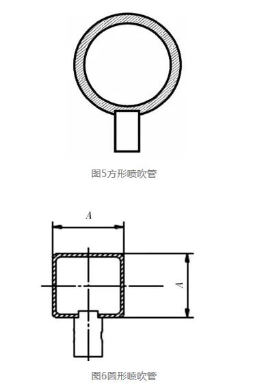 2007年,針對(duì)我們的非袋內(nèi)文氏管或保護(hù)管噴吹結(jié)構(gòu),我們又將傳統(tǒng)的圓形噴吹管(圖5)改進(jìn)為方形管(圖6),這就簡(jiǎn)化了噴嘴接口處理,提高了噴嘴定位精度和與噴管中心線垂直度公差的精度。圖6的噴嘴明顯比圖5噴嘴的定位公差和垂直度公差更易控制,因此更適合專業(yè)加工工具的應(yīng)用和提高產(chǎn)品加工效率。更重要的是,自此變更后再?zèng)]有出現(xiàn)噴嘴偏差造成的破袋案例。