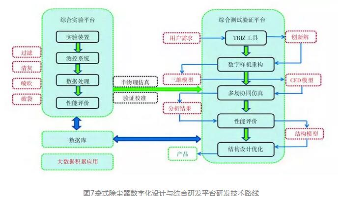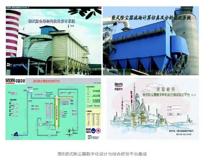 2008年初,我們開始了“袋式除塵器數(shù)字化設(shè)計(jì)與綜合研發(fā)平臺(tái)”的研發(fā)工作,歷時(shí)10年,針對(duì)袋除塵器產(chǎn)品創(chuàng)新研發(fā)的全過(guò)程,包括結(jié)構(gòu)、流場(chǎng)、過(guò)濾、清灰過(guò)程,以數(shù)字化設(shè)計(jì)技術(shù)為基礎(chǔ),創(chuàng)新研發(fā)手段,準(zhǔn)確高效解決實(shí)際應(yīng)用問(wèn)題,不斷提升袋除塵器產(chǎn)品綜合性能指標(biāo),構(gòu)建了袋式除塵器產(chǎn)品研發(fā)數(shù)據(jù)庫(kù),分別開發(fā)了“袋式除塵器流場(chǎng)技術(shù)仿真分析優(yōu)化系統(tǒng)”、“袋式除塵器結(jié)構(gòu)優(yōu)化設(shè)計(jì)系統(tǒng)”,建成了“袋式除塵器綜合測(cè)試平臺(tái)”、“袋式除塵器綜合驗(yàn)證平臺(tái)”和袋式除塵器性能綜合實(shí)驗(yàn)基地(圖7、8)。