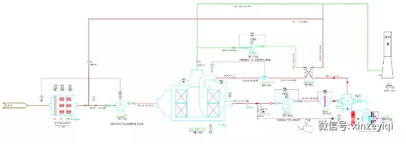 當噴漆車間與烘干車間同時工作時,通過閥門切換將各個車間生產過程中產生的廢氣經收集管路進行收集,由于烘干廢氣風溫較高,噴漆廢氣濕度較高,故將噴漆廢氣及烘干廢氣進行混合利用烘房廢氣的熱量來降低濕度,除濕后廢氣溫度約38℃,由主工藝風機吸入前處理去除絕大部分顆粒物,再利用沸石轉輪吸附濃縮以去除VOCs成分,凈化后的氣體通過煙囪進行達標排放,濃縮后的高濃度VOCs成分被送入RTO進行高溫氧化,一定停留時間后被氧化成為CO2和H2O,通過煙囪排放至大氣。取部分RTO爐內高溫氣體對脫附氣進行加熱提供轉輪的脫附熱。