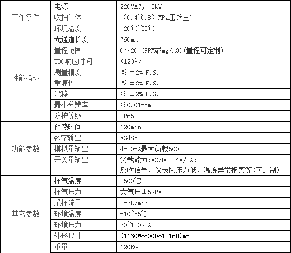 激光氣體分析儀參數